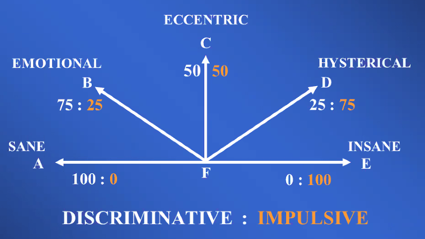 Mindshare varies and your personality varies. 100% mind is insanity. 75% is hysterical. 50% is eccentric. 25% your mind emotional. 100% of intellect makes you a man.